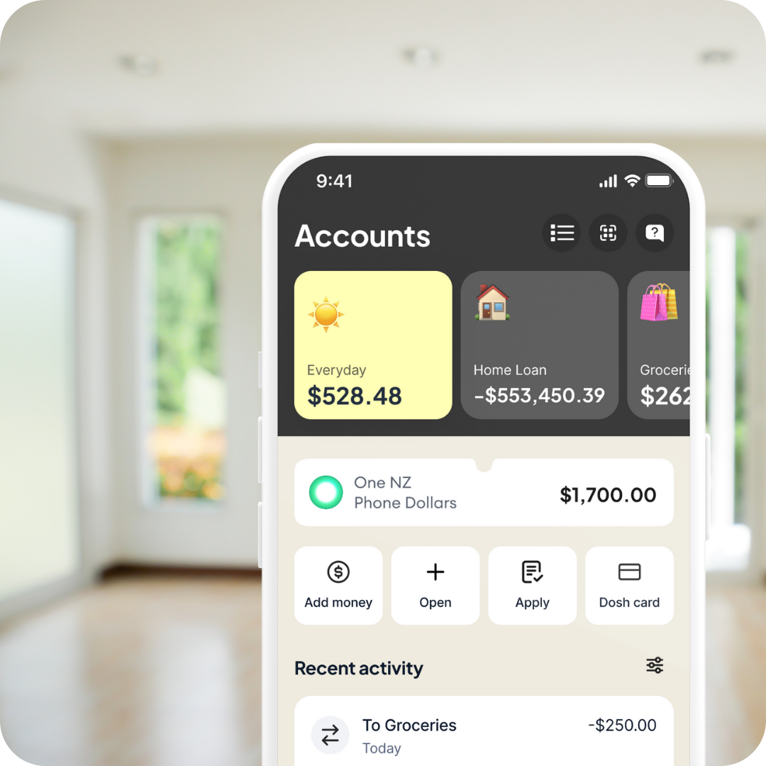 Upon settling a home loan through dosh, One NZ will give you a $1,700 Phone Dollar reward. Every Phone Dollar equals one real dollar off the price of a new interest-free phone at One NZ. You can also use the trade-in value of your old phone towards your phone upgrade. For more detail see one.nz/one-wallet